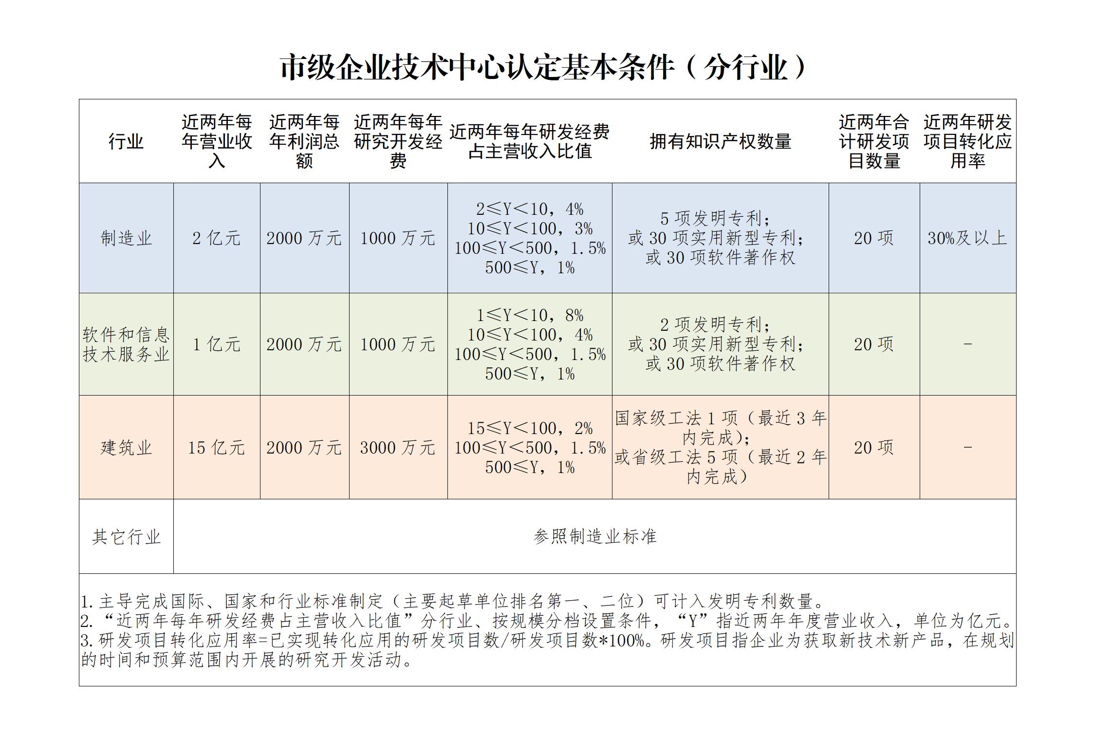 附件:市級企業(yè)技術(shù)中心認(rèn)定基本條件(分行業(yè))